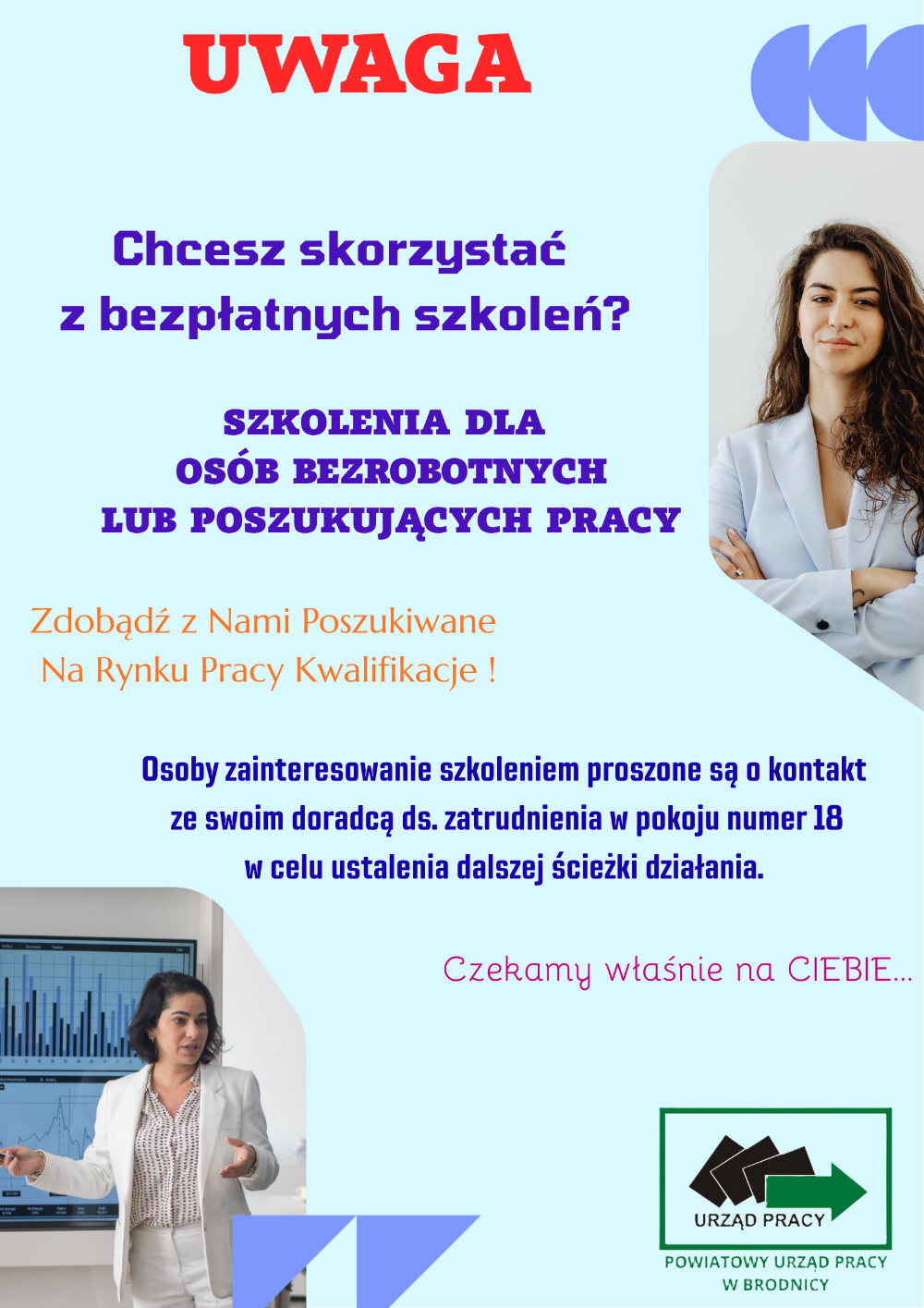 Powiatowy Urząd Pracy w Brodnicy informuje, iż od dnia 01.10.2025r. otwiera nabór wniosków o sfinansowanie szkoleń